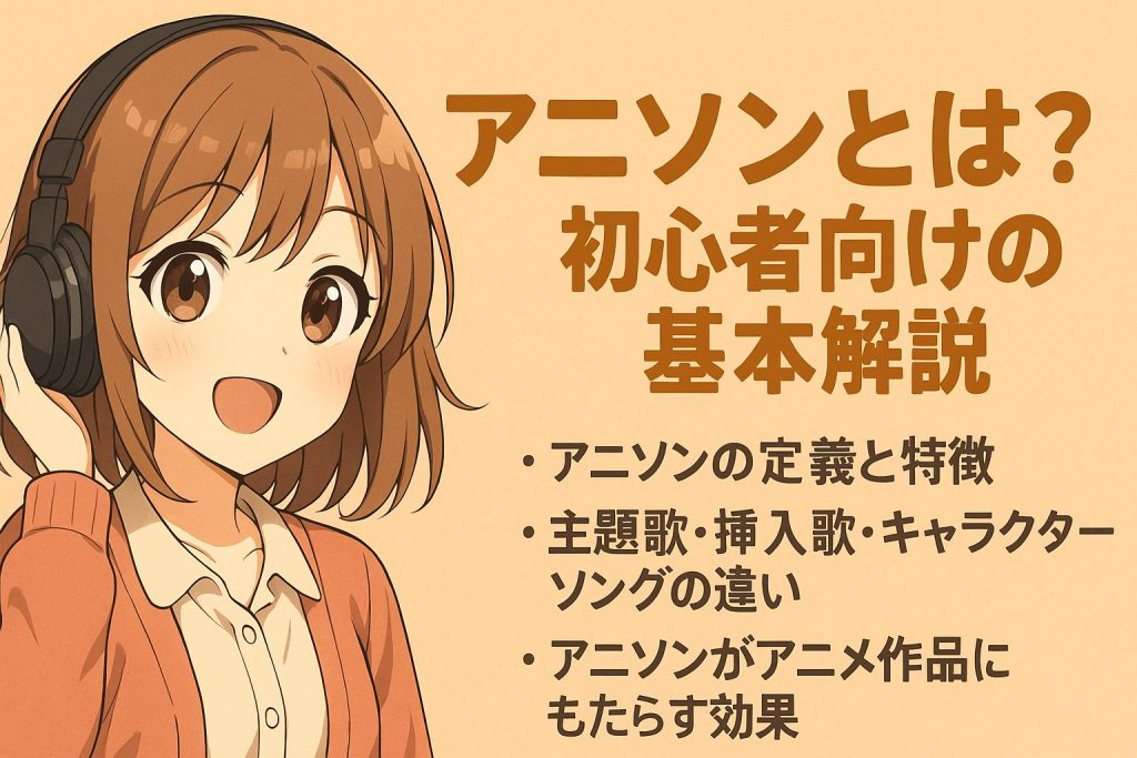 アニソン(アニメソング)は、アニメ作品に欠かせない音楽であり、映像と一体となって視聴者の心を動かします。主題歌や挿入歌、キャラクターソングなど、さまざまな形で物語の世界観を広げる役割を果たします。この記事では、アニソンの定義や特徴、種類の違い、そしてアニメ作品にもたらす効果について、初心者でもわかりやすく解説します。これを読めば、アニメをより深く楽しむための新たな視点が手に入ります。
